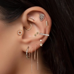 Femeia actuala este indrazneata si poarta aur pe toata urechea. Pentru un look modern si divers iti recomandam acest model de cercel din aur cu piercing si email care efectiv iti taie respiratia prin design-ul lor unic si diferit.Toate bijuteriile noastre sunt lucrate manual si sunt produse co..