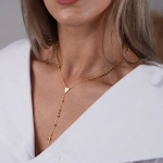 Rozariul din aur galben de 14K cu cruce, medalionul Fecioarei Maria si bile de 3 mm este mai mult decat o bijuterie – este o declaratie de credinta, eleganta si rafinament. Confectionat manual in Italia, acest colier impresioneaza prin atentia acordata fiecarui detaliu, de la bilele perfect proportionate, pana la lantul realizat cu taietura diamantata, care capteaza lumina intr-un mod subtil si delicat.